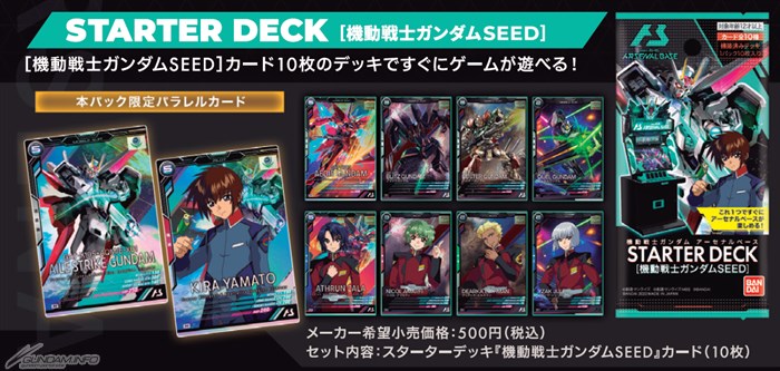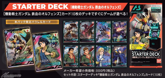 Além disso, o jogo também contará com um Kit Introdutório que inclui um deck inicial de Mobile Suit Gundam Seed e outro de Mobile Suit Gundam: Iron Blooded Orphan, tendo dez cartas cada um.